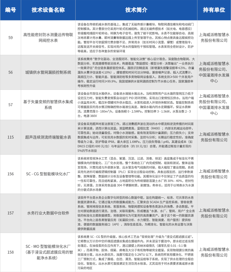 上海威派格(603956)智慧水务股份有限公司自主研发的7项技术和设备凭借其技术的先进性、成熟度与实际应用成效成功入选,获国家水利部权威认可,为智慧水务节水事业再添力量!